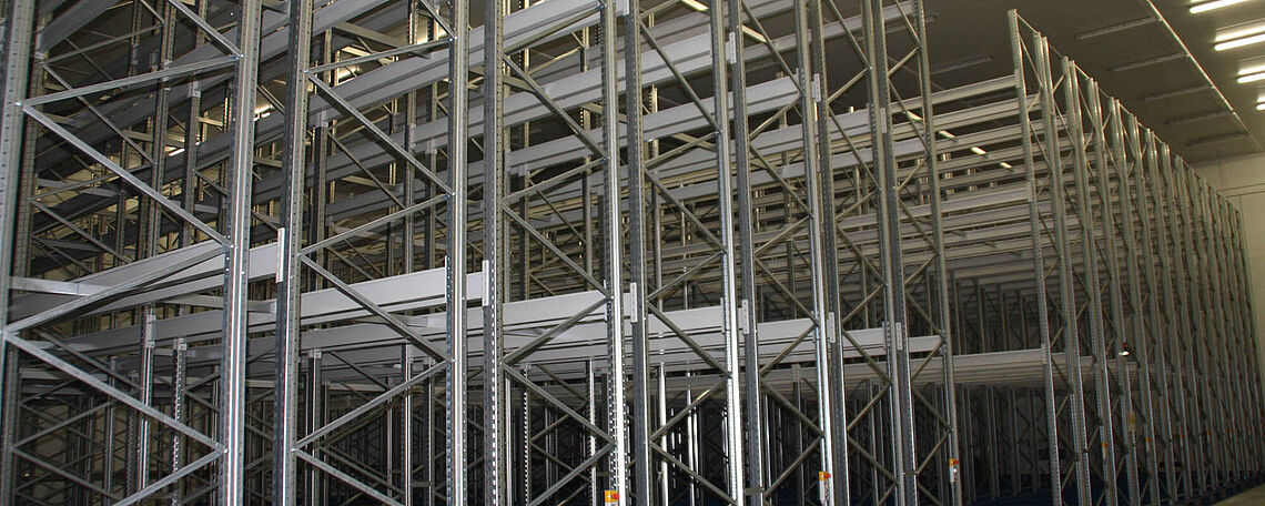 Palettenregale auf Verfahrwagen