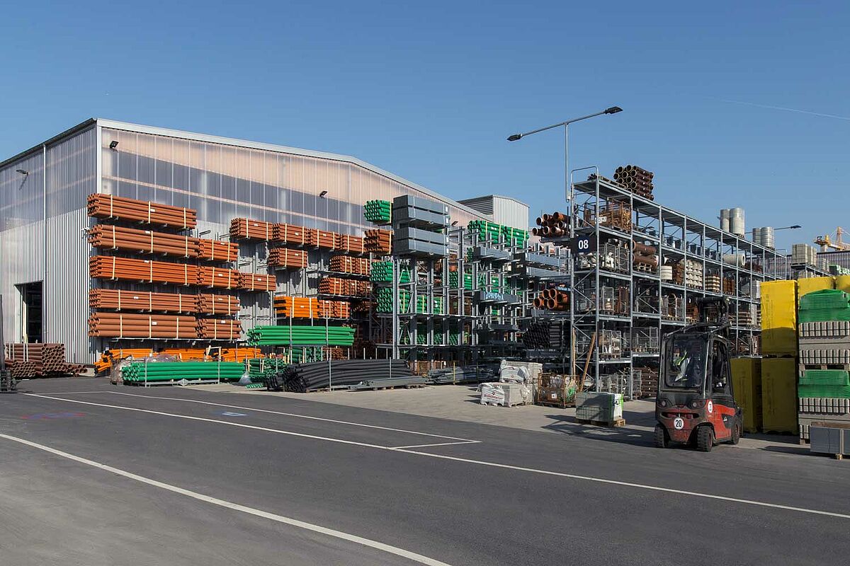 Für seine Geschäftskunden zählt Beinbrech mit einer Betriebs- und Lagerfläche von ca. 100.000 Quadratmetern und einem leistungsfähigen Logistik-Konzept zu einem der stärksten Großhändler in Sachen Holz und Baustoffe in der Region. Damit das so bleibt, entschied sich das Unternehmen, das gesamte Betriebsgelände zu restrukturieren: Verkaufs-, Ausstellungs- und Lagerflächen wurden erweitert, die Kundenbedienung optimiert, Ladezonen zusammengefasst und Verladeflächen erweitert.