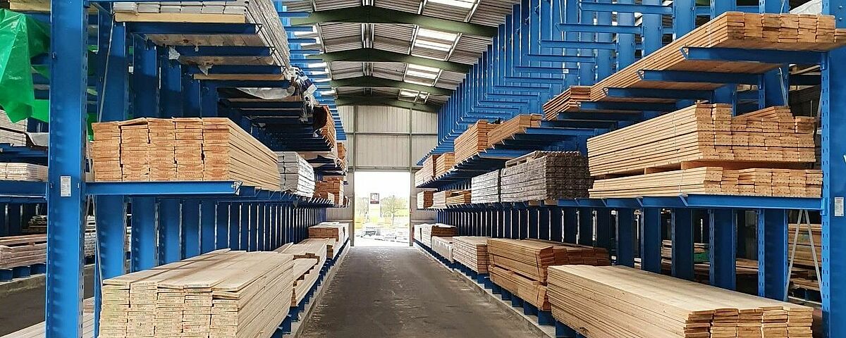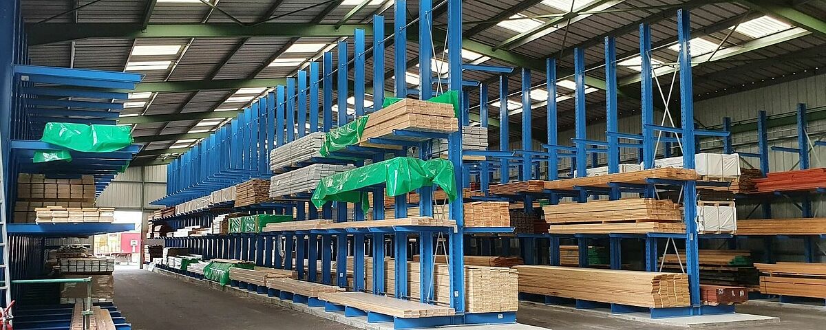 Der französische Baustoffhändler Bois Du Poitou hat an seinem Sitz in Soudan sein vorhandenes Lager für Hölzer und Paneele modernisiert: Statt wie bisher die Holzwaren auf dem Boden zu lagern, sind sie jetzt in zwei doppelseitigen sowie zwei einseitigen Kragarmregalen von OHRA in direktem Zugriff. Bois Du Poitou kann damit das bestehende Gebäude wesentlich besser ausnutzen, die Zugriffszeiten auf die Waren erheblich reduzieren und die Lagerkapazitäten verdreifachen.
