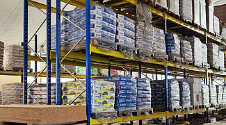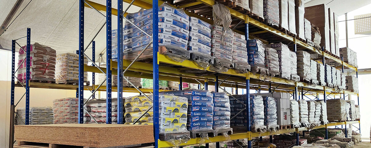 Neue Schwerlastregale von OHRA erlauben Budmax, einem der größten Händler von Baustoffen und Ausbauprodukten in Bulgarien, die effiziente Lagerung von Sackwaren. Bisher standen sie auf Paletten auf dem Boden. Mit einer Fachlast von 5.000 Kilogramm und einer Ständerhöhe von 4.580 Millimetern kann Budmax die bis zu 1.200 Kilogramm schweren Paletten jetzt auf vier Ebenen lagern; das ermöglicht eine deutlich bessere Flächennutzung sowie einen erheblich einfacheren und schnelleren Zugriff auf die Artikel.