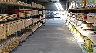 „Unsere Kunden erwarten zudem bei immer mehr Baustoffen, dass sie witterungsgeschützt gelagert werden“, so Thomas Walter. Möglich machen das unter anderem Regalhallen, die OHRA an beiden Standorten des Unternehmens errichtet hat. Die Kragarmregale dienen dabei gleichzeitig als tragende Konstruktion für Dach und Wände - das ist kostengünstiger und schneller zu realisieren als der Bau einer separaten Halle, in die dann die Regale gestellt werden. Weitere Regale im Außenbereich wurden zudem von OHRA mit einem integrierten Dach ausgerüstet. OHRA lieferte hierzu auch die für die Genehmigung erforderliche Statik und Planung, sodass das Verfahren schnell abgeschlossen werden konnte.