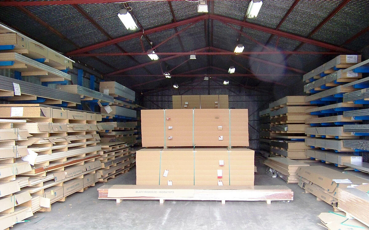 Um Lagerfläche optimal zu nutzen, hat das polnische Unternehmen Damar seine Lager mit Kragarm- und Palettenregalen von OHRA ausgestattet. Die Regalsysteme ermöglichen nicht nur eine übersichtliche Lagerung der Span-, OSB- und Küchenarbeitsplatten, sondern sind auch flexibel konfigurierbar – sie können so auf sich ändernde Lagergegebenheiten angepasst und individuell auf die Gebäudesituation zugeschnitten werden.