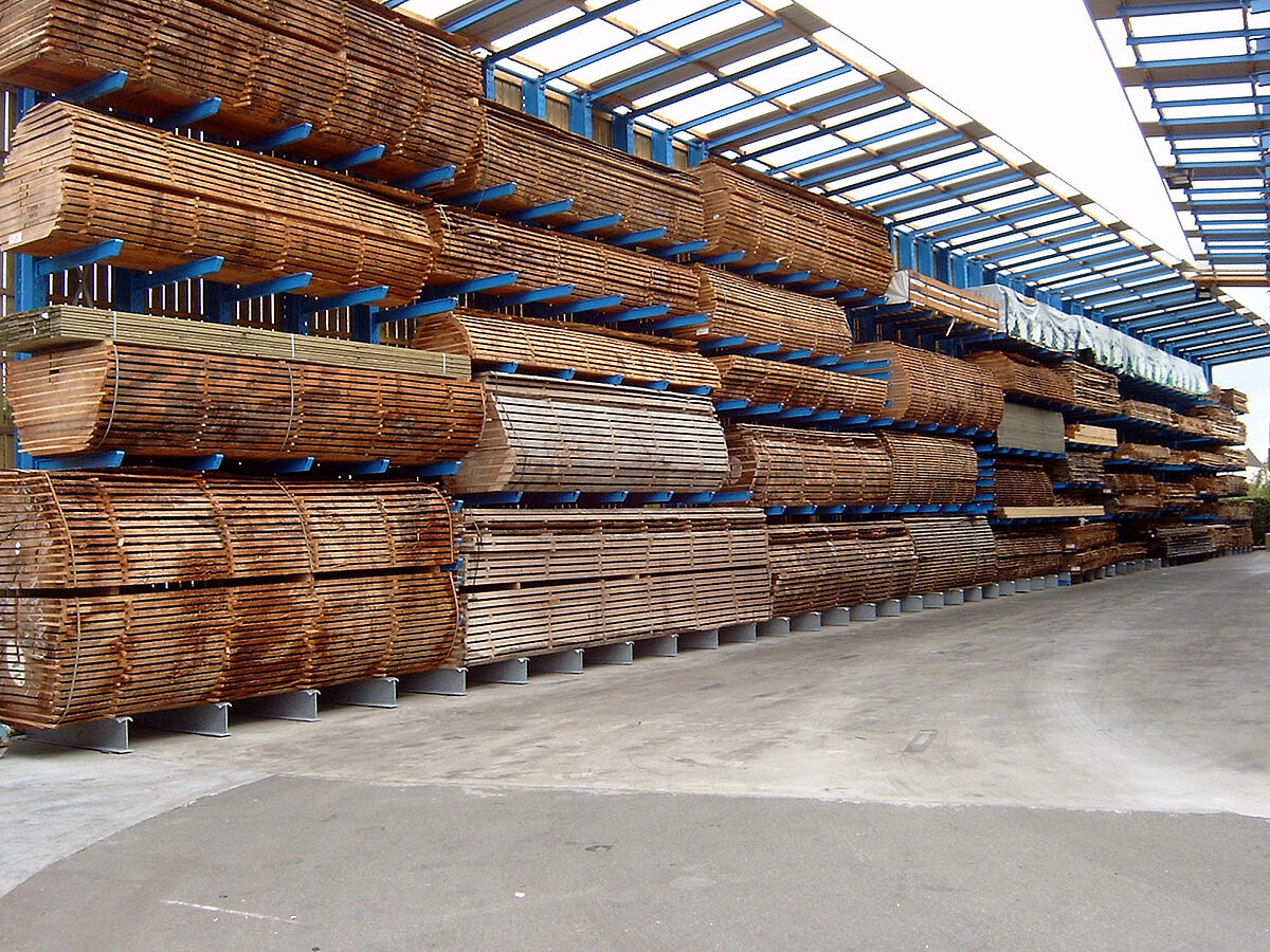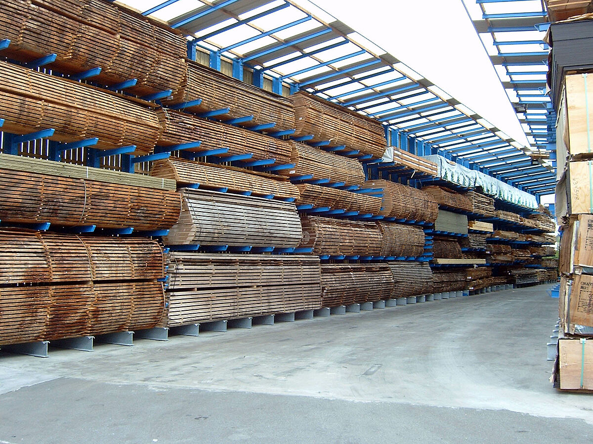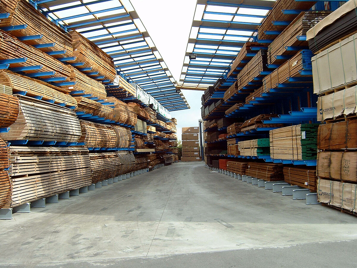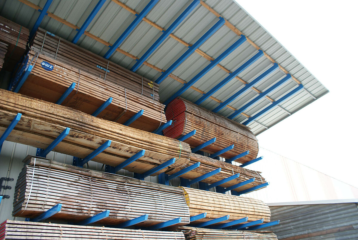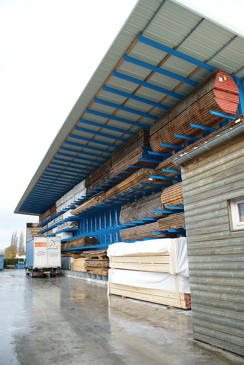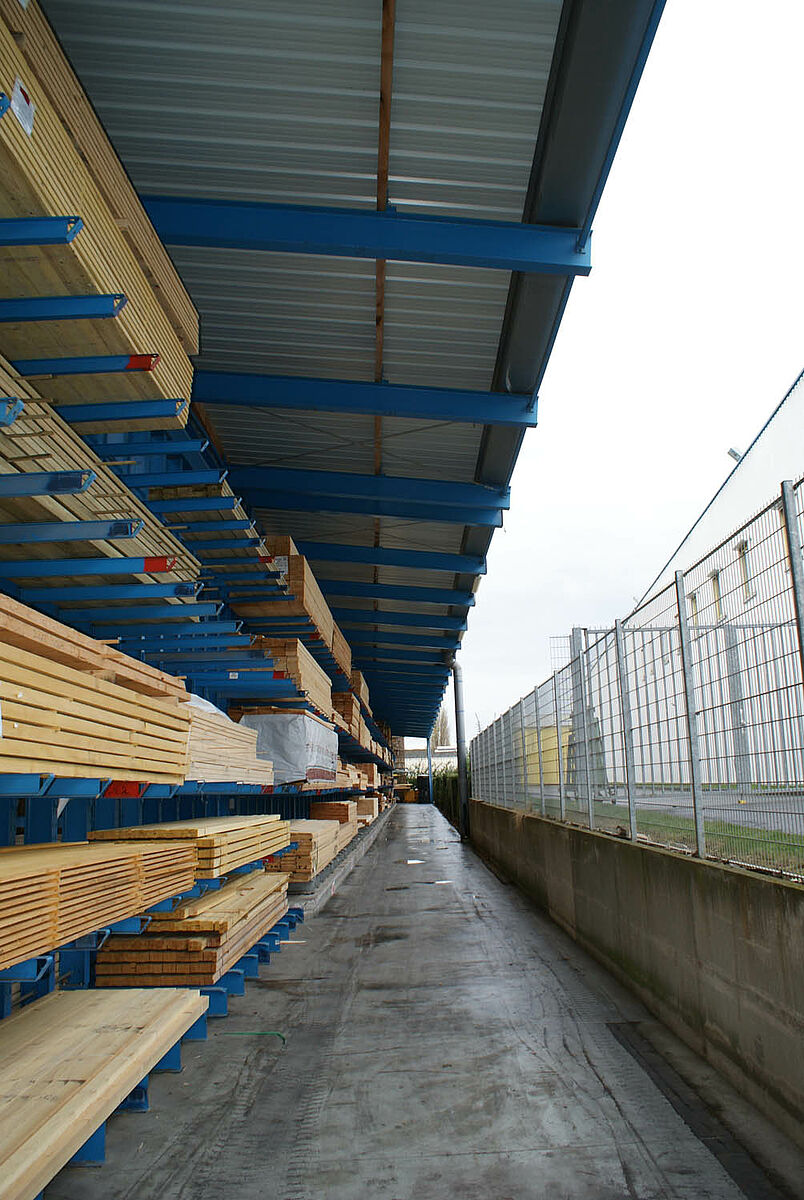 Für die Lösung dieser Lagerprobleme hatte der Kunde nun die Wahl zwischen einem konventionellen Hallenbau oder einem Regal-Hallenbau von OHRA. Angesichts der beschriebenen Anforderungen hat sich Descamps für die Lösung von OHRA entschieden. Mit dieser Variante konnte nicht nur die eigentliche Überdachung realisiert, sondern auch zusätzliche Lagerkapazitäten geschaffen werden. Durch den Einsatz von robusten Kragarmregalen konnte auch die Außenseite der überdachten Halle als Lager für solche Produkte genutzt werden, die keinen oder nur wenig Schutz vor Witterungseinflüssen benötigen. Diese Produkte wurden bisher in einem anderen Gebäude gelagert.