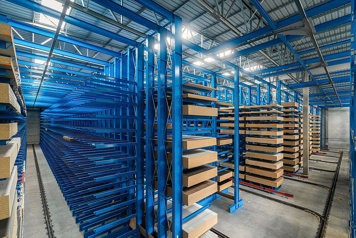 Realisiert wurde das Lager durch OHRA. Der Marktführer für Kragarmregale fertigt alle tragenden Elemente seiner Regale aus vollwandigen Stahlprofilen. Daher bieten sie eine hohe Tragfähigkeit und besonders schlanke Bauweise, beste Voraussetzungen also für die hohe Flächenausnutzung im neuen 11 Meter hohen Lager von Drevo Trust. Für OHRA sprach zudem die langjährige Erfahrung bei der Realisierung vollautomatischer Holzlager. Der Regalspezialist war bereits bei der Konzeption des Lagers mit eingebunden und arbeitete dabei eng mit der Firma Köttgen zusammen, die die Regalbediengeräte lieferte. So konnten die Schnittstellen zwischen Regalanlage und Bediengeräte exakt aufeinander abgestimmt und reibungslose Automatikprozesse gewährleistet werden.