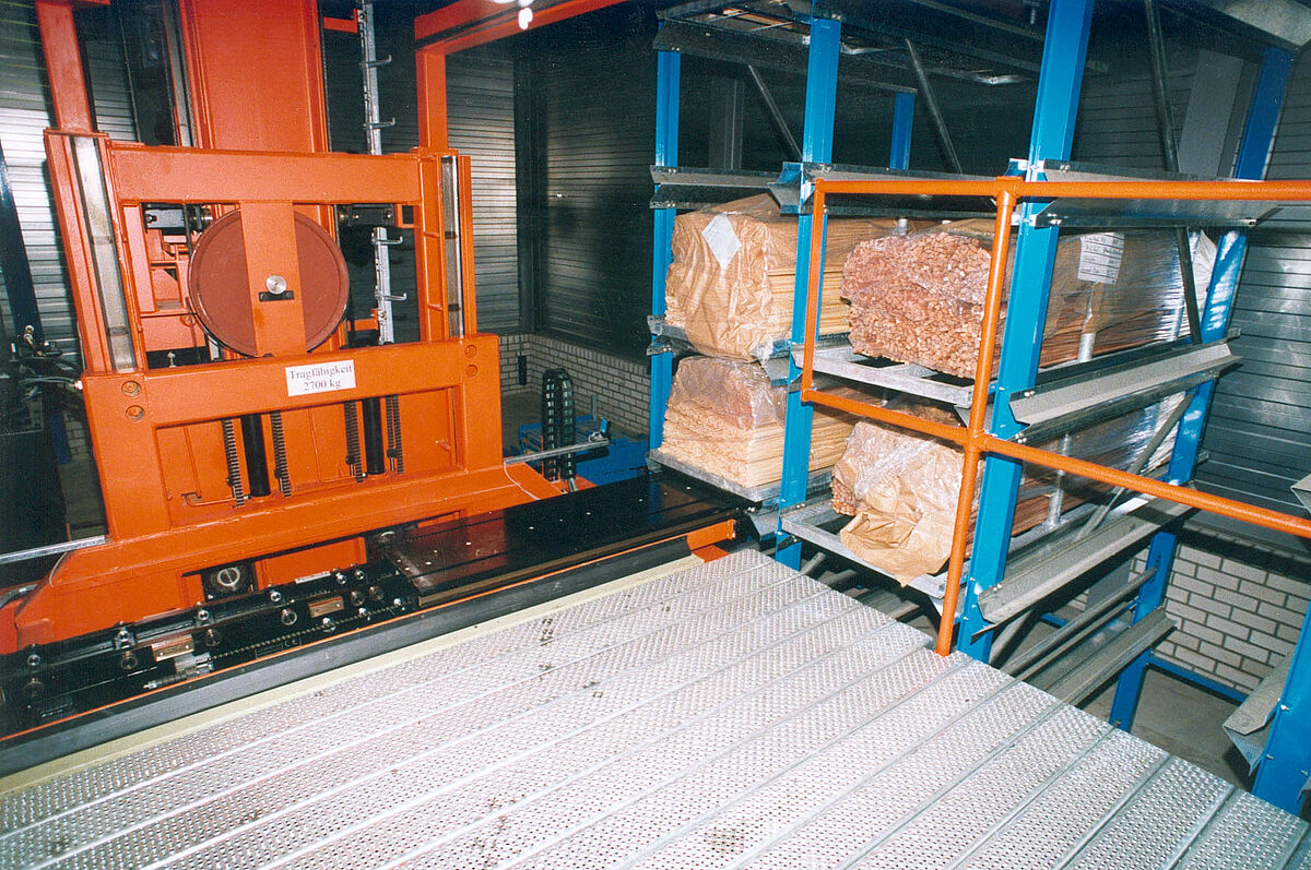 Vor Inbetriebnahme der neuen Anlage erfolgte die Lagerung und Kommissionierung der Produkte in sieben verschiedenen Hallen. 14 Mitarbeiter waren allein mit der Lagerung und Kommissionierung beschäftigt. Als Hilfsmittel wurden Gabelstapler eingesetzt.