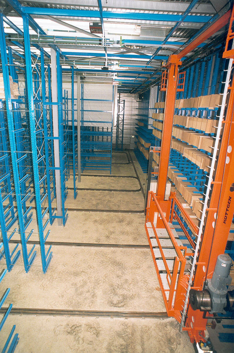 Die Hauptmerkmale der in Zusammenarbeit mit Fa. Köttgen gefundenen Lagerlösung sind folgende: Ein zentrales, 12 m hohes, Lager mit insgesamt 3 automatischen Regalbediengeräten (RBG), insgesamt 5 Mitarbeiter für die Lagerbedienung sowie einer Lagermöglichkeit von Lagerware bis 4,8 m Länge in einer Lagerhöhe von 10 m.