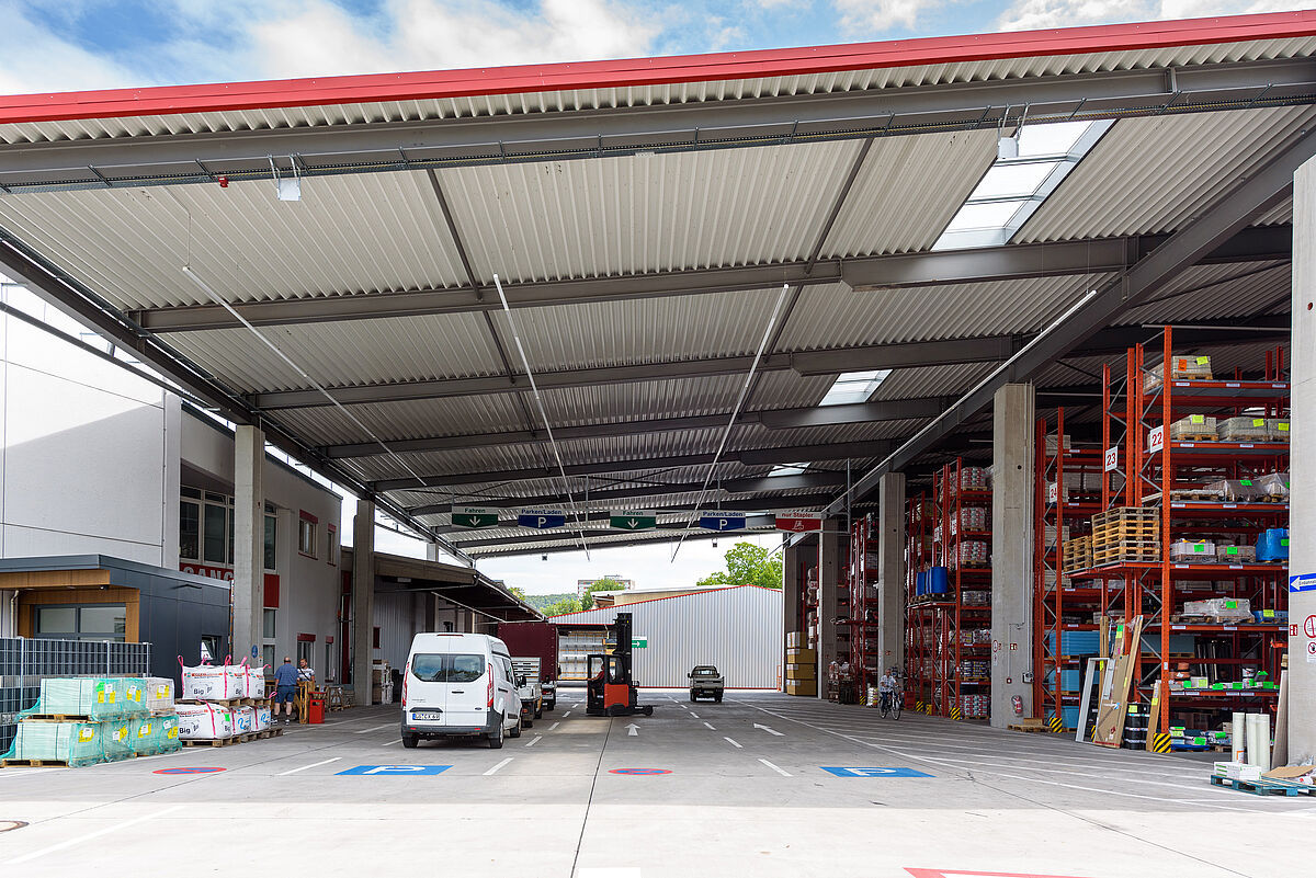 Durch die neuen Regalanlagen kann Götz + Moriz seinen Kunden am Standort Lörrach nun ein wesentlich breiteres und tieferes Lagersortiment bieten sowie durch die frei werdenden Flächen Anlieferung und Abholung entzerren. Überdachte Be- und Entladezonen sowie kürzere Wartezeiten sind weitere Vorteile für den Kunden.