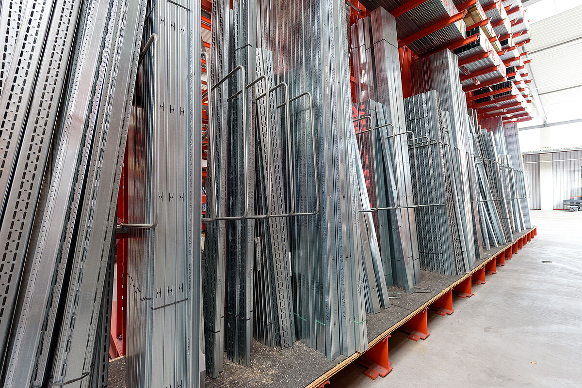 Da Lörrach in einer Erdbebenzone 3 liegt, wurden Fachwerk und Fußplatten der neuen Regale von OHRA so berechnet, dass sie diese zusätzlichen Belastungen sicher aufnehmen können. Da bei Regalen von OHRA alle tragenden Elemente aus warmgewalzten Stahlprofilen und nicht aus Blechprofilen gefertigt werden, bieten sie von Hause aus eine hohe Tragfähigkeit. Zudem knicken die Ständer bei einer seitlichen Belastung nicht ein, auch nicht, wenn sie von einem Stapler touchiert werden. Da mehrere Regalzeilen im Außenbereich mit einem Gefälle laufen, konzipierten die Fachleute von OHRA zudem Palettenregale, bei denen die Auflagen treppenförmig montiert wurden. Spezielle Distanzplatten zwischen Regalfuß und Befestigungsplatte auf dem Boden gleichen zusätzlich Höhendifferenzen aus. Auch die Regale in der einseitig offenen Lagerhalle erforderten höheren Berechnungsaufwand, da eine Hallenseite ein größeres Öffnungsmaß als 30 Prozent aufweist und so Windkräfte in die Kalkulation mit einbezogen werden mussten.