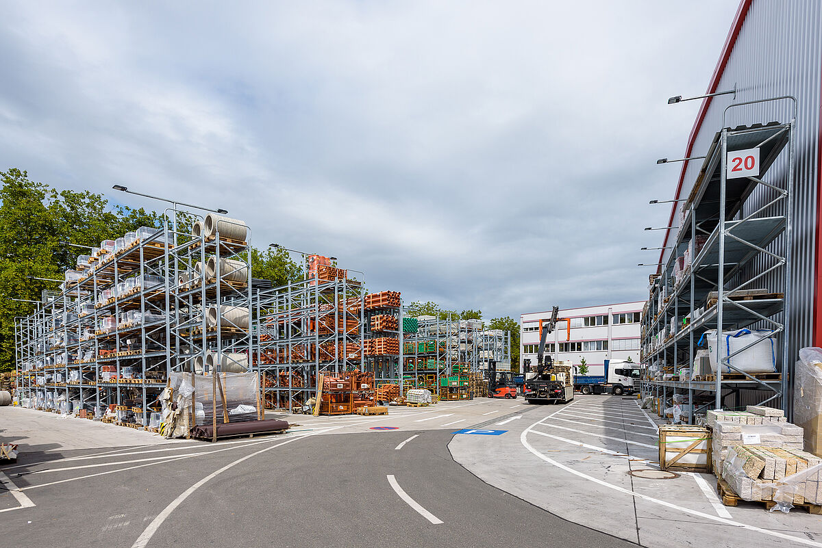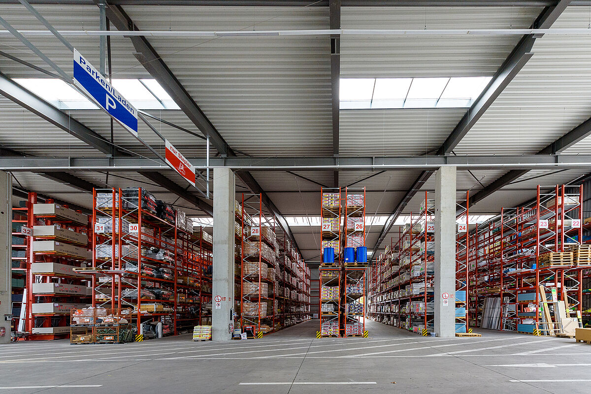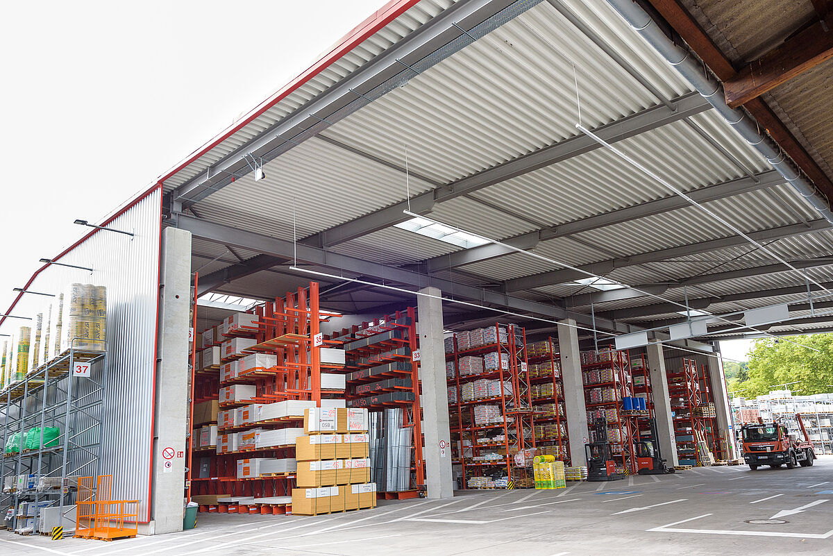 Götz + Moriz, der marktführende Baustoff- und Fliesenhandel in Südbaden, hat den Standort Lörrach erheblich erweitert. Das Unternehmen investierte vor allem in größere Lagerflächen und eine neue Lagerhalle, die mit Paletten- und Kragarmregalen von OHRA ausgestattet wurden. Dabei stellte der Standort den Regalbau vor besondere Herausforderungen: Einige Regale mussten entlang eines Gefälles errichtet, bei anderen Windkräfte einkalkuliert und für alle die Erdbebenzone 3 berücksichtigt werden. Dennoch konnten dank der stabilen Bauweise der OHRA-Regale Rahmenhöhen von bis zu 9.100 Millimeter mit Feldlasten von 25.200 Kilogramm und Fachlasten von 5.000 Kilogramm realisiert werden.