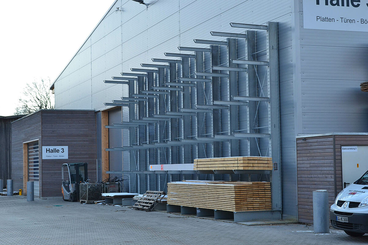 Holz Herbst stattete bereits 1993 die erste von drei Hallen mit OHRA-Regalen aus. 1996 folgte die zweite Halle, 2012 dann die dritte. Da bei Herbst von der losen Schraube bis zum 18-Meter-Leimbinder die unterschiedlichsten Waren gelagert werden, setzt das Unternehmen sowohl Kragarmregale mit verschiedenen Armlängen als auch Palettenregale mit einer Fachbreite von 2700 Millimeter von OHRA ein. Die Regalzeilen sind im Durchschnitt 36 Meter lang und bieten bei einer Höhe von sieben Metern sechs Lagerebenen.
