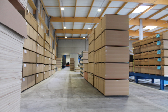 Hue-Socoda, einer der führenden Händler für Plattenwerkstoffe aus Holz in der Bretagne, hat das Lager an seinem neuen Standort in Langueux mit Regalsystemen von OHRA ausgestattet: Dank der stabilen Kragarmregale konnte die Regalanlage mit einer Höhe von neun Metern realisiert werden – und ist damit mehr als doppelt so hoch wie im alten Lager. Zusätzlich optimiert eine Lagerbühne die Flächenausnutzung im Lager: Mit ihr kann Kleinmaterial raumsparend auf zwei Etagen gelagert werden. 90 Zentimeter hohe Konsolen vereinfachen zudem im Wareneingang die Aufnahme der angelieferten Plattenpakete durch Stapler.
