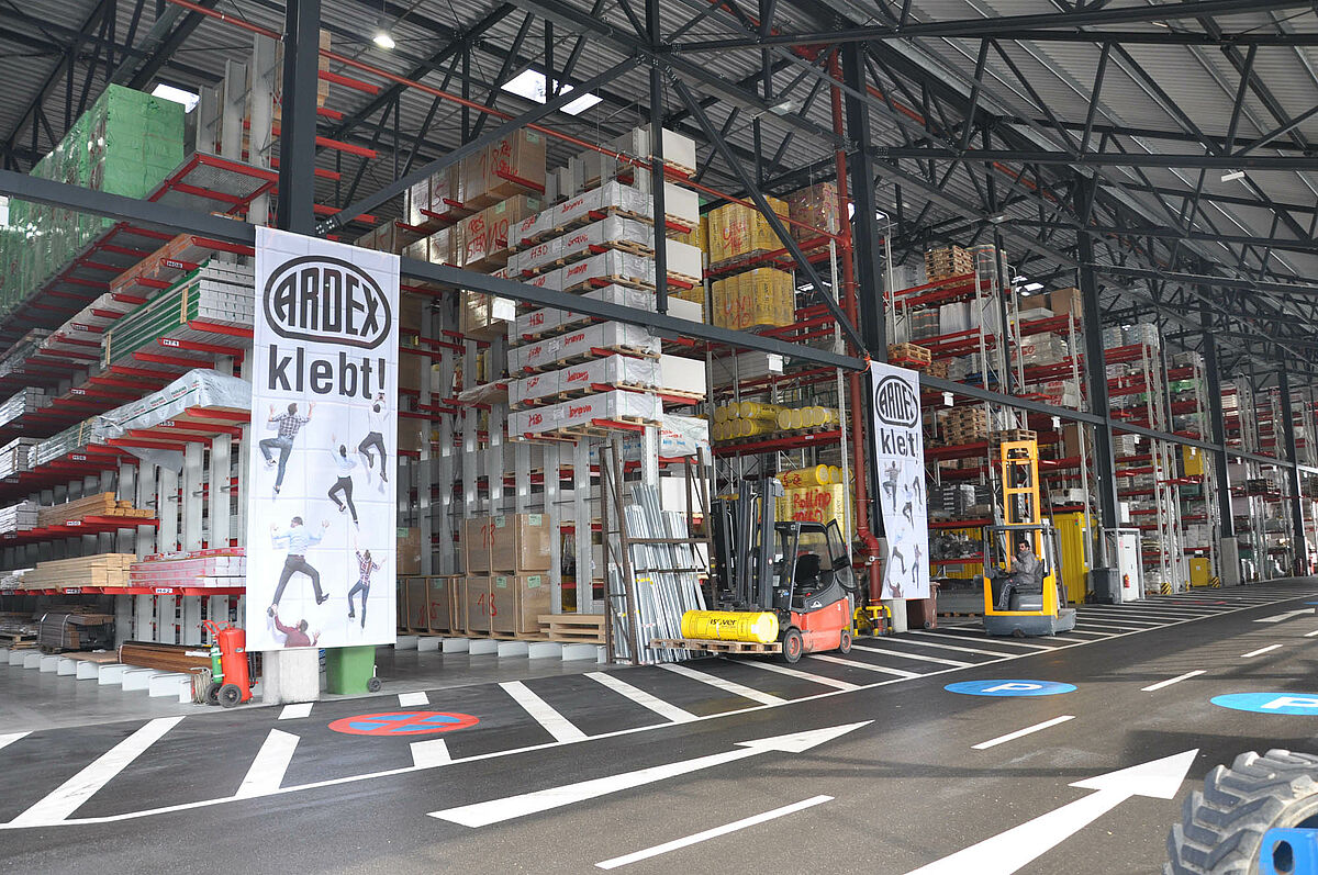 Hier werden sowohl Langgüter aus den Bereichen Holz, Tiefbau oder Garten- und Landschaftsbau bevorratet wie auch schwere Waren aus dem Natur- oder Betonstein-Sortiment. Zusätzlich werden, je nach Saison, auch Artikel aus dem Bereich des Baumarktes eingelagert, wie zum Beispiel Rasenmäher.