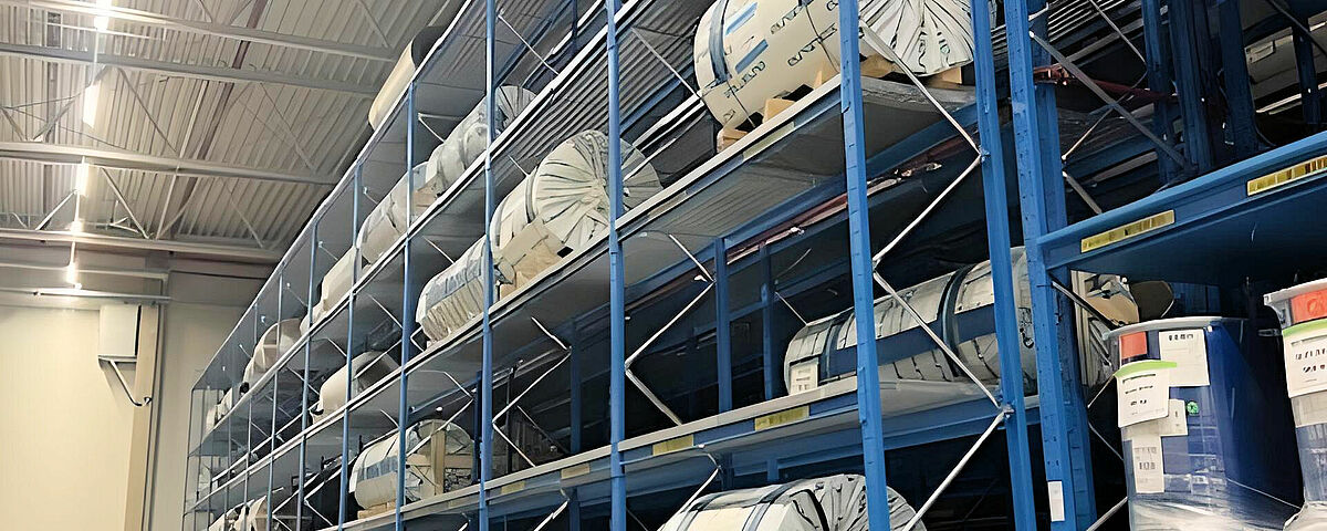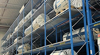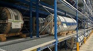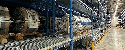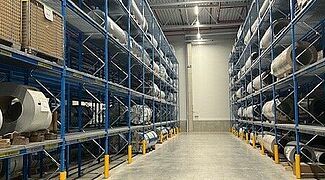 Die Mischung von Kragarm- und Palettenregalen ermöglicht die Lagerung so unterschiedlicher Materialien wie Klebstoffe, Aluminium- und GFK-Coils, Sperrholzpakete, PVC-Böden oder Holz- und Polyurethanschaumleisten. Ein Vorteil der aus warmgewalzten Stahlprofilen konstruierten Regale von OHRA ist ihre hohe Traglast: Bei Knaus Tabbert tragen die Kragarmregale zum Beispiel bis zu 12 Tonnen pro Ständer, die Traglast eines einzelnen Kragarms beträgt bis zu 1.000 Kilogramm - auch auf der höchsten Lagerebene in 7,5 Metern Höhe. Die bis zu 1,2 Tonnen schweren GFK-Coils sowie die maximal 1,8 Tonnen schweren Blech-Coils werden dagegen in Palettenregalen gelagert. Gitterböden ermöglichen dabei die flexible Einlagerung unabhängig vom Format der Coil-Ladehilfsmittel. Auch in den Kragarmregalen sorgen teilweise Gitterböden dafür, dass unterschiedlichste Gebinde und Ladungsträger eingelagert werden können.