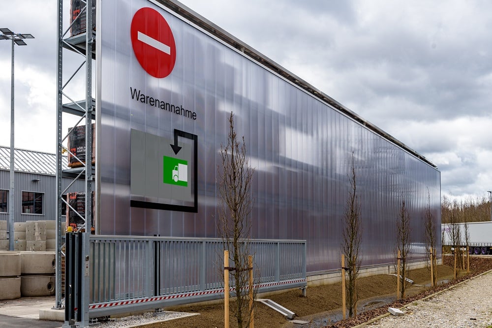 Kraft Baustoffe, nach eigenen Angaben der derzeit größte Baustoffhändler im Raum München, hat das Freilager seiner neuen Niederlassung Höhenkirchen-Siegertsbrunn mit Paletten- und Kragarmregalen von OHRA realisiert. Die Regale sind nicht nur mit Dächern versehen, sondern - da strenge Lärmschutzauflagen umgesetzt werden mussten – sie verfügen auch über eine Rückwandverkleidung, die als Lärmschutzelement dient.
