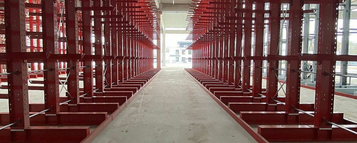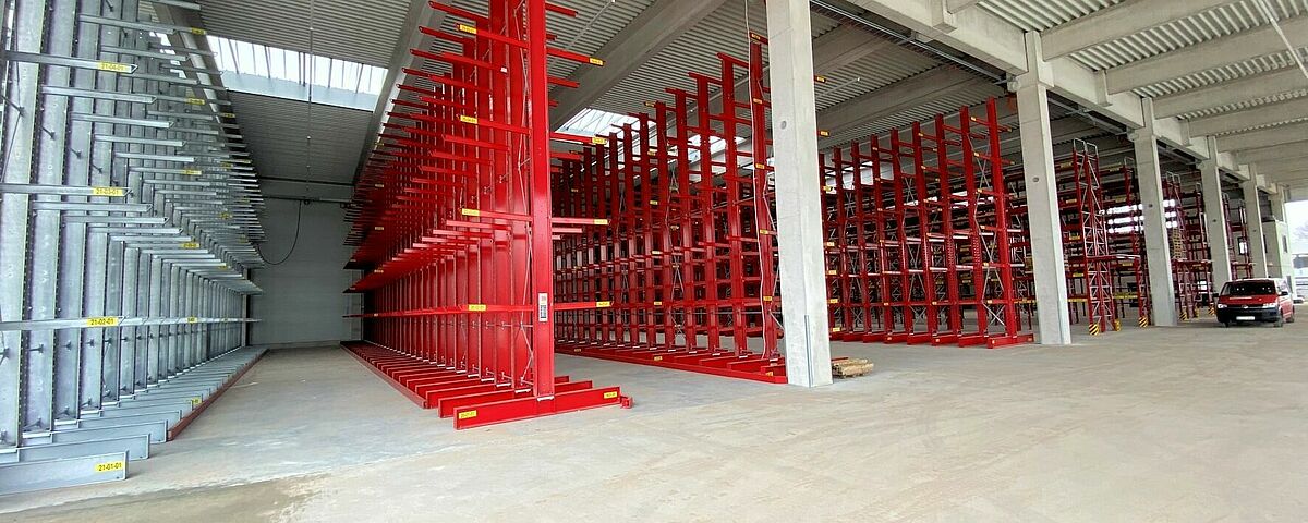 Am neuen, für die Privatkunden deutlich attraktiver gelegenen Standort werden die Waren nun in einer offenen Halle in über 30 Meter langen Kragarm- und Palettenregalen gelagert. Einige Fächer der Palettenregale sind mit Gitterrosten oder Spanplatten ausgestattet, sodass neben palettierter Ware auch Artikel in Kartons, Säcken oder anderen Gebinden untergebracht werden kann.