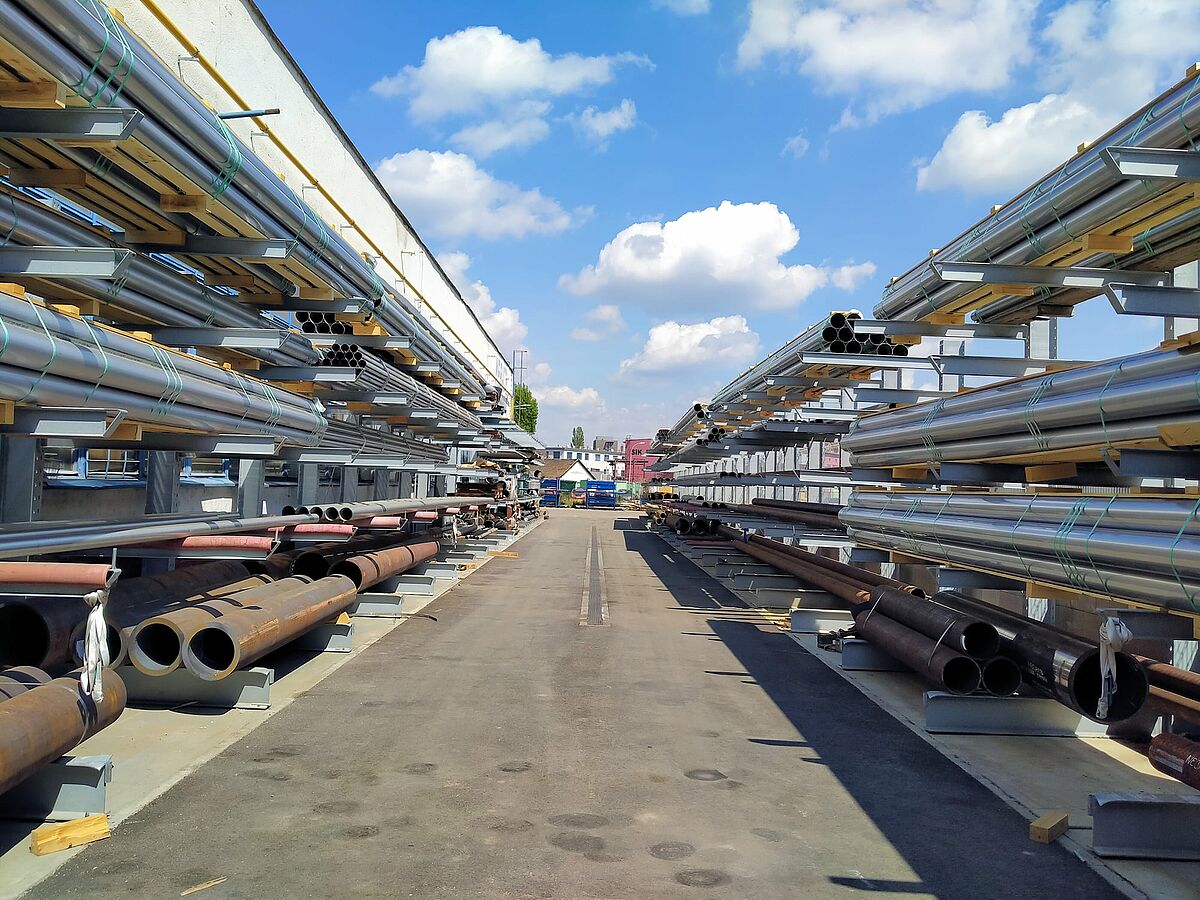 Das Regalsystem von OHRA konnte insbesondere wegen seiner Robustheit und Stabilität überzeugen: Da OHRA alle tragenden Elemente der Regale ausschließlich aus vollwandigen Stahlprofilen fertigt, bieten sie eine hohe Tragfähigkeit bei gleichzeitig schlanker Bauweise. Zudem passte OHRA die Regale genau auf die Bedürfnisse von Mebatex an, so dass die unterschiedlichen Rohre sicher und effizient gelagert werden können. OHRA installierte dazu auf dem Außengelände zwei Zeilen einseitiger Kragarmregale mit einer Gesamtlänge von insgesamt über 92 Metern.