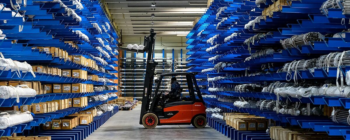Mundinger Transport, Stahlfachspeditionen für Stabmaterialverteilung, setzt im neuen Lager im baden-württembergischen Rudersberg konsequent auf ein durchgängiges Materialhandling mit dem Gabelstapler. „Die in den meisten Langgutlagern eingesetzten Krane sind oftmals ein Nadelöhr für eine effiziente Intralogistik“, so die Erfahrung von Geschäftsführer Dietmar Wiedmann. „Werden sämtliche Logistikprozesse dagegen mit dem Gabelstapler durchgeführt, haben wir ein sehr flexibles und effizientes System.“ Da Mundinger Transport für seine Kunden das Stabmaterial auch vereinzelt, auftragsbezogen bündelt, verpackt und sogar sägt, ist die Effizienz beim Materialhandling besonders wichtig. Wiedmann ergänzt: „Zudem lässt sich durch eine Erhöhung der Zahl der eingesetzten Stapler die Umschlagleistung des Lagers sehr einfach steigern – das ist mit Kranen nicht möglich.“
