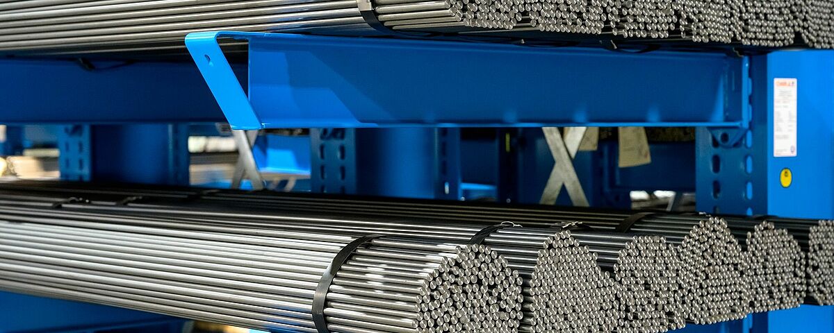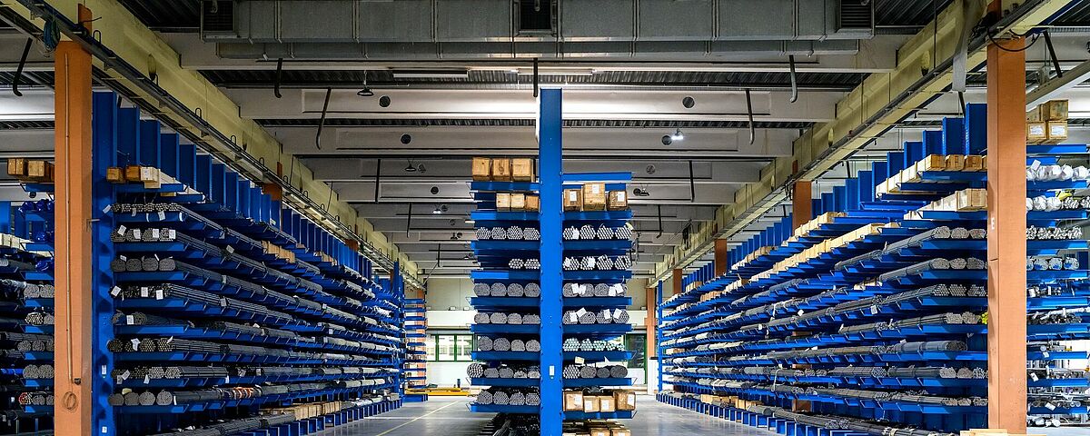 Daher bildete der Staplereinsatz die Basis für das Konzept des neuen Langgutlagers: Blank- und Edelstähle sollten in Langformaten und Bundlängen von 3 bis 6 Metern in Kragarmregalen gelagert werden. So kann mit dem Stapler gezielt und schnell auf einzelne Artikel zugegriffen werden. Eingesetzt werden sollten Standardstaplern der 5-Tonnen-Klasse, die eine Last von bis zu 4 Tonnen komfortabel bewegen können. Jedes Regalfach sollte dabei mit einer Staplerladung befüllt werden können, um die Prozesse möglichst einfach zu halten. Als sicher zu erreichende Hubhöhe setzte Wiedmann 5,5 Meter an.