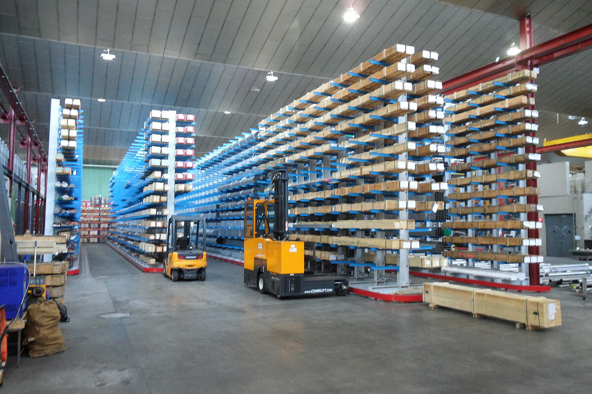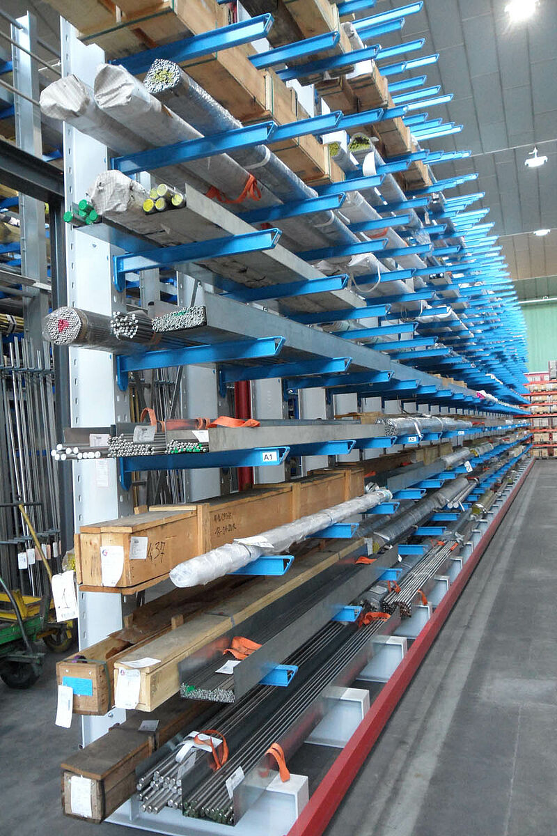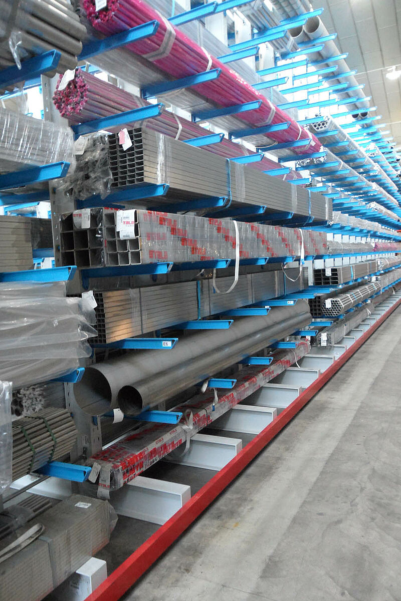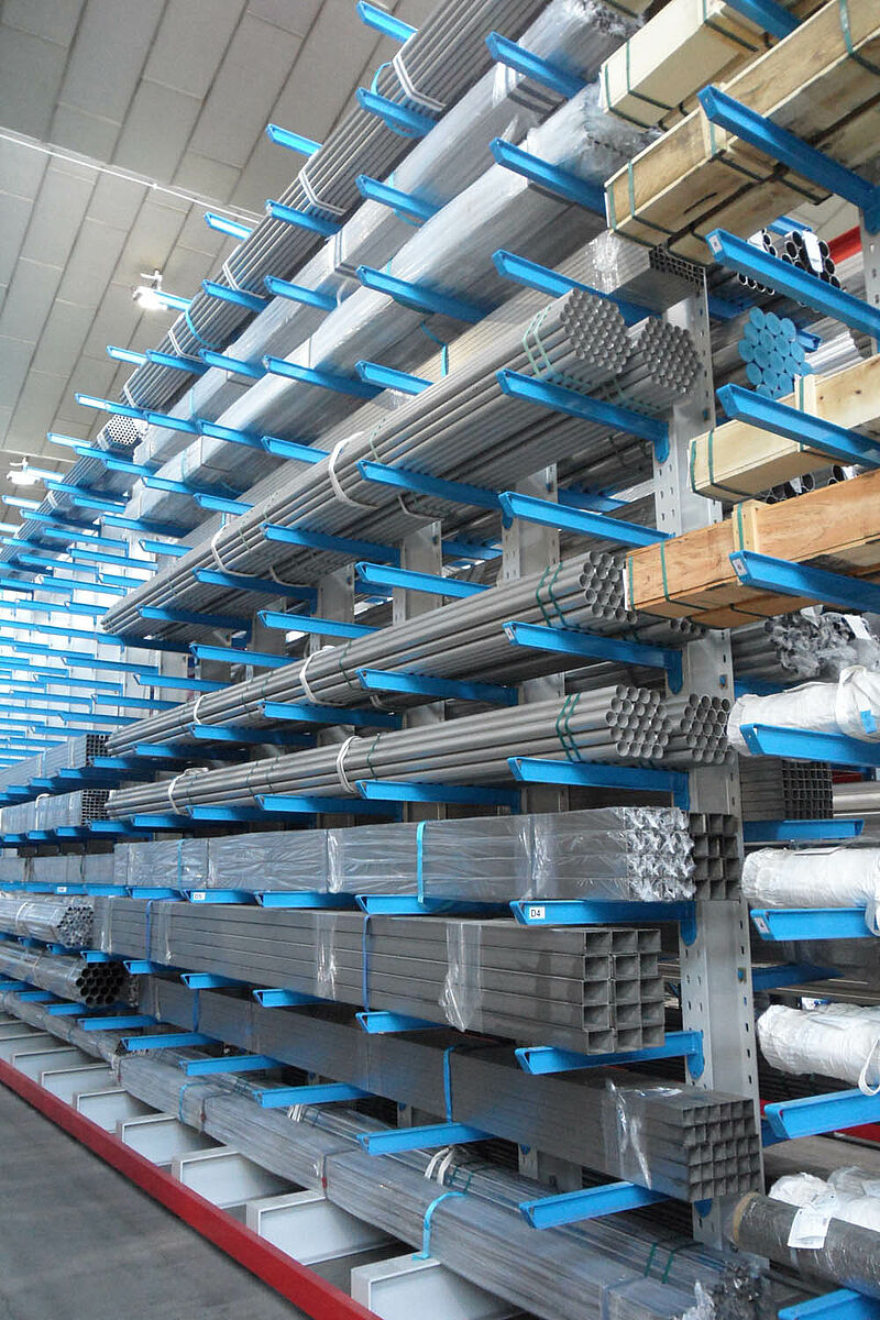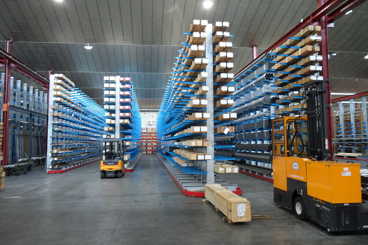 Daher entschied Notz sich für das Kragarmregal-System von OHRA. Das in Kerpen, Deutschland, ansässige Unternehmen fertigt seine Regale aus stabilen warmgewalzten Stahlprofilen, die hohe Bauhöhen und Traglasten erlauben. Zudem werden die Kragarme der OHRA-Regale horizontal in ein in die Ständer gestanztes Raster eingehängt und nicht verschraubt oder verschweißt. So lässt sich schnell die Höhe der einzelnen Lagerebenen ändern – ganz ohne Werkzeug. Genau diese Flexibilität ist die Voraussetzung für die von Notz geforderte Multifunktionalität des Regalsystems - schließlich sollten so unterschiedliche Produkte wie Stabstahl, Rohre, Winkelprofile, Blankstahl oder Halbfertigteile in den Längen 3 und 6 Meter gelagert werden.