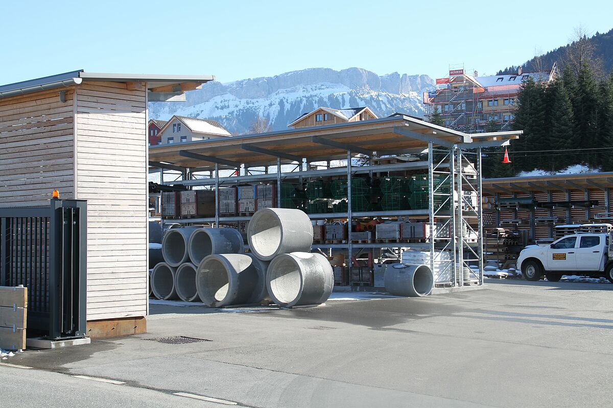Das Produktportfolio des Röhrenhandels Appenzell umfasst Artikel für den Tiefbau genauso wie für Hochbau, Gartenbau und allgemeine Betonwaren. Darüber hinaus finden Handwerker ein breites Angebot an Werkzeugen und Berufskleidung. Zur Lagerung all dieser unterschiedlichen Artikel entschied das Unternehmen sich, eine Mischung von Paletten- und Kragarmregalen von OHRA zu installieren, die teils in einer Halle, teils im Außenbereich aufgestellt sind. Das neue Lager bietet Platz für rund 1.000 Euro-Paletten und wird über Gabel- und Hochhubwagen bedient.