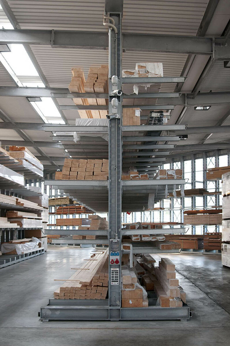 Die in Siegburg ansässige Schyns GmbH bietet als Groß- und Einzelhandelsunternehmen ein umfassendes Holzsortiment für private und gewerbliche Kunden – vom Konstruktionsvollholz bis zum Gartenhaus. Bevorratet werden die Holzartikel in einem Regallager, das seit über 20 Jahren stetig erweitert wurde. Aus einzelnen Regalzeilen entstand so über die Jahre eine komplette Halle, die später wiederum dupliziert wurde. So konnte das gesamte Lager mit dem Unternehmen mitwachsen.