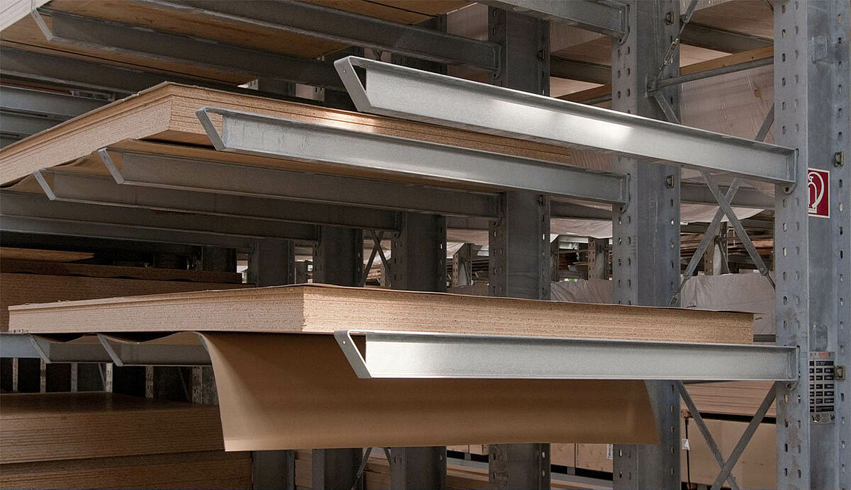Schyns setzte dabei von Anfang an auf Kragarmregale von OHRA: Zum einen überzeugte das System mit seiner Robustheit – alle tragenden Elemente sind aus vollwandigem, warmgewalztem Stahl gefertigt. Die Profile können so bei Stößen elastisch nachgeben und behalten auch im rauen Lagerbetrieb dauerhaft ihre statischen Eigenschaften. Zudem erlaubt die stabile Konstruktion große Lagerhöhen – bei Schyns liegt die oberste Lagerebene auf einer Höhe von 6 Metern. Zum anderen werden die Kragarme der OHRA-Regale nicht mit dem Ständer verschraubt oder verschweißt, sondern eingehängt. Der Arm kann bei Stößen durch Stapler oder Ware ausweichen, Arm und Ware bleiben unbeschädigt. Die Regalständer sind in einem 100 Millimeter Raster gestanzt, in das die Kragarme flexibel eingehängt werden. Die Arme lassen sich ohne Werkzeug verstellen, so dass die Regale schnell an neue Gegebenheiten angepasst werden können.