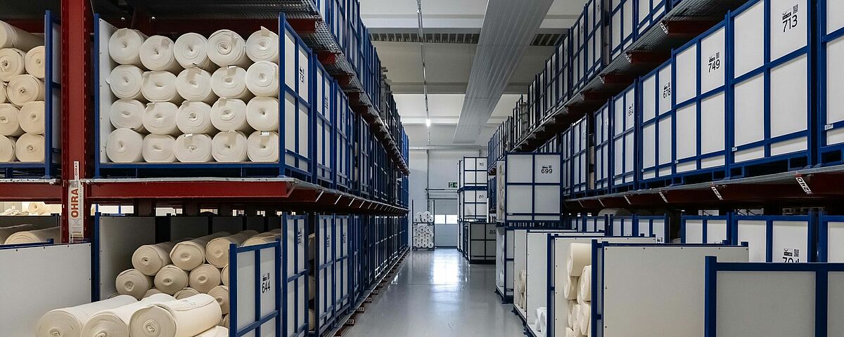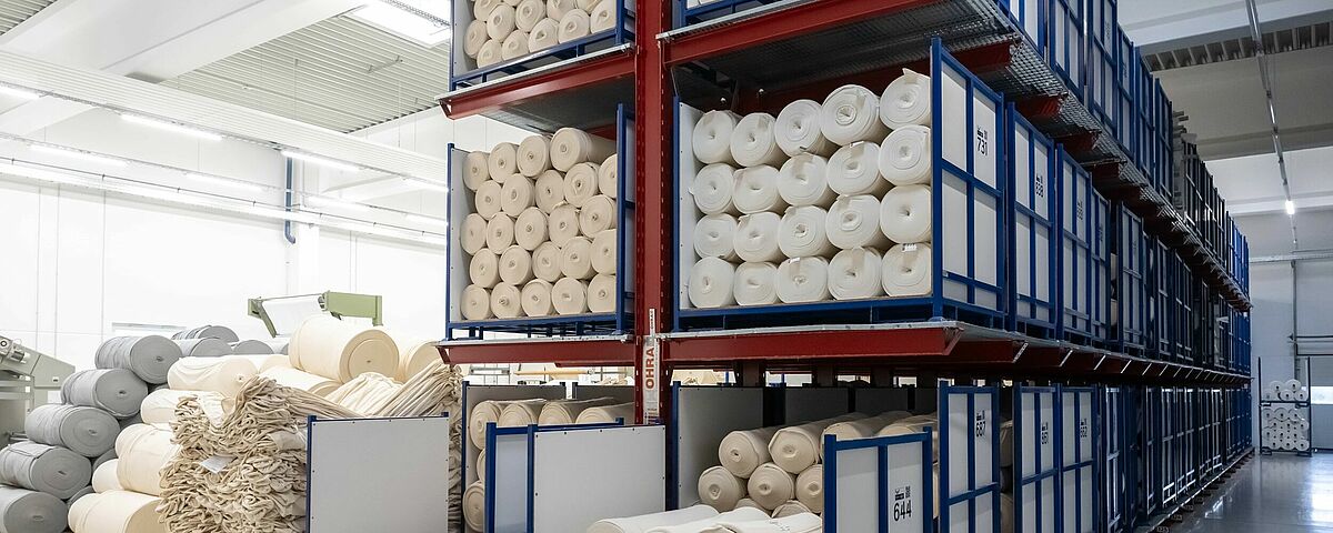 trigema, Deutschlands größter Hersteller von Sport- und Freizeitbekleidung, kann durch die Umstellung von Boden- auf Regallagerung seine Produktion deutlich besser versorgen. Dazu installierte OHRA Kragarm- und Palettenregale, in denen die in der eigenen Strickerei produzierten Stoffe zwischengelagert werden, bevor sie zur Veredelung in die Ausrüstung gelangen. Gitterroste ermöglichen dabei die Lagerung der Stoffe in unterschiedlichen Zuständen, unabhängig vom Format oder den Lagerhilfsmitteln. Dank der Lagerung in den OHRA-Regalen konnte trigema die Effizienz der Produktion um 5 Prozent steigern.