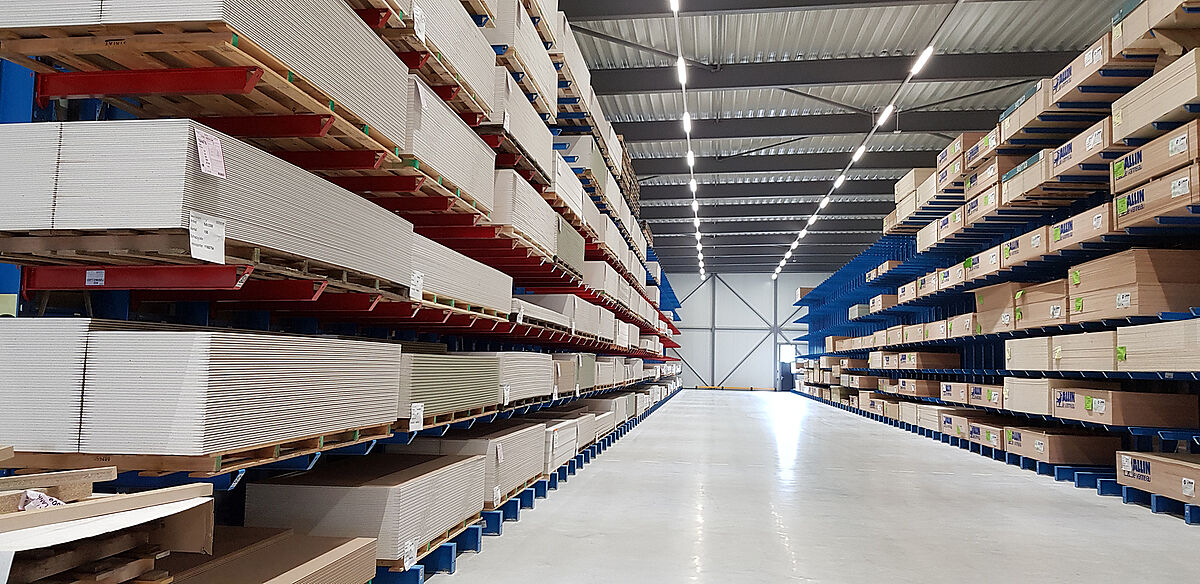 Verdouw Bouwproducten, einer der führenden Großhändler für Baumaterialien in den Niederlanden, hat das Logistikzentrum an seinem neuen Standort in Apeldoorn mit Kragarm- und Palettenregalen von OHRA ausgerüstet. Neben der Qualität sprachen insbesondere die Flexibilität in der Nutzung sowie die leichte Anpassbarkeit an ein sich veränderndes Produktportfolio für die Regalsysteme. Mit Gitterböden in einigen Kragarmregalen sowie Palettenregalen mit Fachweiten von bis zu 4.200 Millimetern lassen sich die unterschiedlichsten Paletten einlagern. Dank in die Kragarmregale integrierter Stellplätze für die vertikale Lagerung können Türen und Fensterrahmen vom gleichen Regal entnommen werden wie andere Baumaterialien.