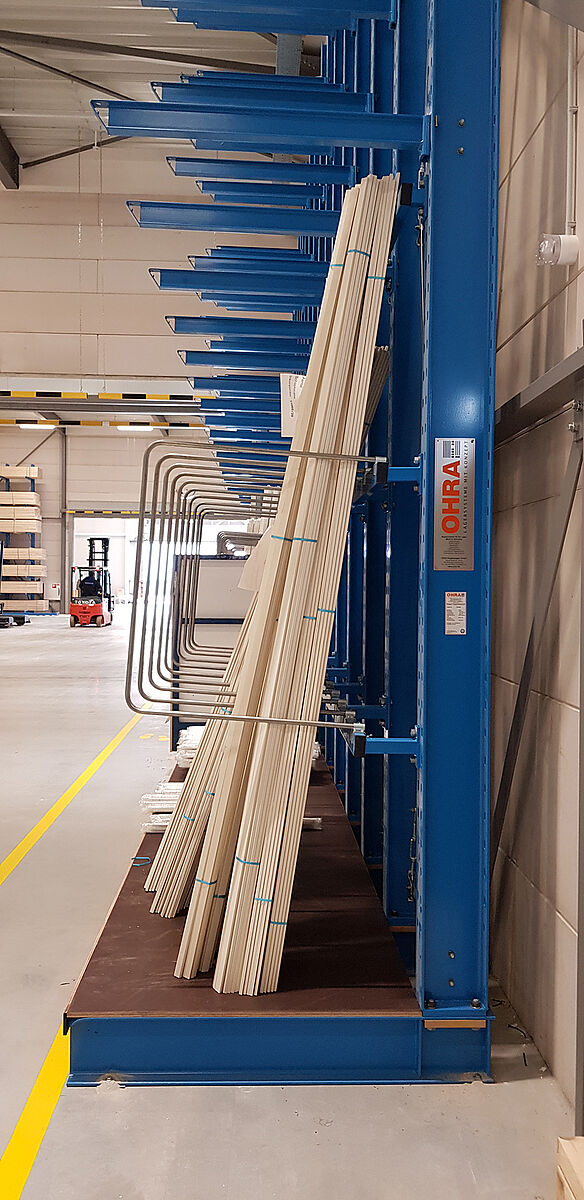 Bereits am Standort Gouderak haben sich Regalsysteme von OHRA bewährt, so dass auch der neue Standort mit Lagersystemen des europäischen Marktführers für Kragarmregale ausgerüstet wurde. Darüber hinaus sprach auch die Flexibilität der Regale für deren Einsatz: So ermöglichen Gitterböden in den Kragarmregalen eine durchgehende Lagerung unterschiedlichster Palettenformate und Waren ohne störende Zwischenstützen. Das verhindert zudem Beschädigungen der Ware beim Ein- und Auslagern. Dank der stabilen Konstruktion der Regale – alle tragenden Elemente sind aus vollwandigen Stahlprofilen gefertigt – beträgt die Fachlast eines Palettenregals bei einer Fachweite von 4.200 immer noch eine Fachlast von 7.377 Kilogramm möglich.