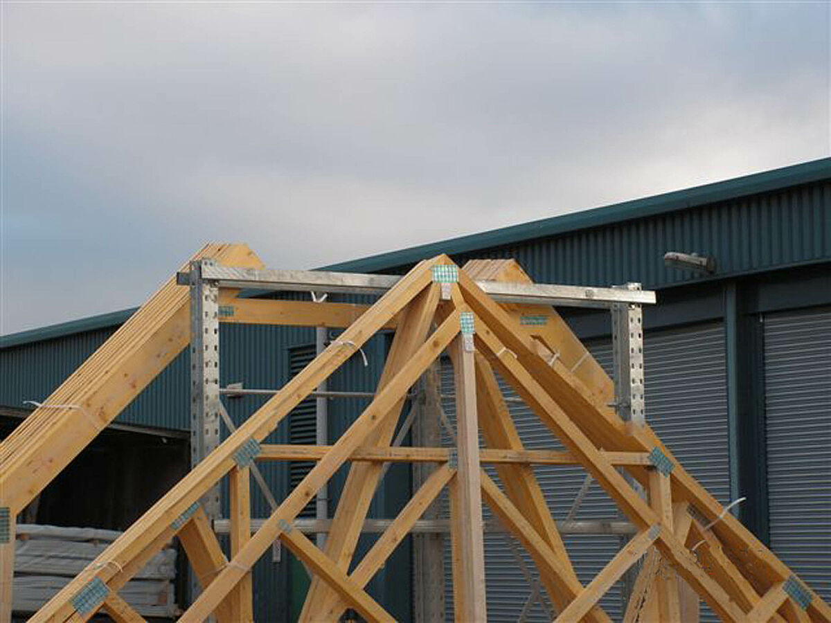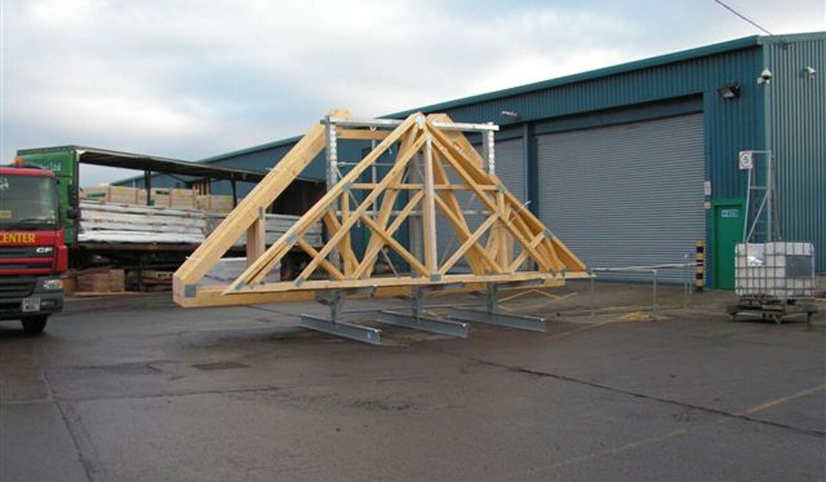 Walker Timber Ltd., spezialisiert auf die Herstellung von Dachbindern und Holzkonstruktionen, mit Sitz in Bo’ness in der Nähe von Edingburgh (Schottland), benötigte ein Lagersystem für die neu gefertigten Dachbinderkonstruktionen. Diese sollten im Außengelände bis zur Verladung auf Lkws sicher und kommissionierfreundlich gelagert werden.